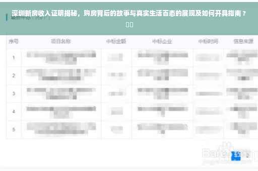 在深圳这座繁华都市,新房收入证明成为了越来越多人心中的焦点话题,随着房价的不断攀升,购房成为了许多人的梦想,本文将深入探讨深圳新房收入证明的重要性,揭示背后的故事,展现真实的生活百态。