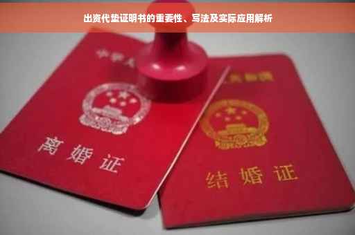 摘要:,,出资代垫证明书是一种重要的财务文件,用于证明某一方在特定交易中代替另一方垫付资金的情况。本文详细解析了出资代垫证明书的重要性及其实际应用,包括其撰写方式和关键要素。通过实例说明,帮助读者了解如何正确书写出资代垫证明书,以便在财务交易中准确、有效地证明资金流动和权益关系。