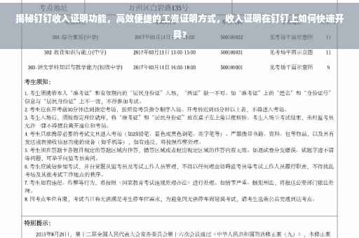 摘要:本文将为你揭秘钉钉的收入证明功能,这是一种高效便捷的工资证明方式。通过钉钉,你可以轻松开具收入证明,无需繁琐的线下流程。本文将指导你如何在钉钉上开启收入证明功能,为你提供详细的操作步骤,让你轻松获取工资证明。