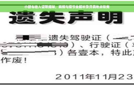关于小轿车收入证明,很多人存在一些误解和疑问,下面我们将揭示其中的真相与细节: