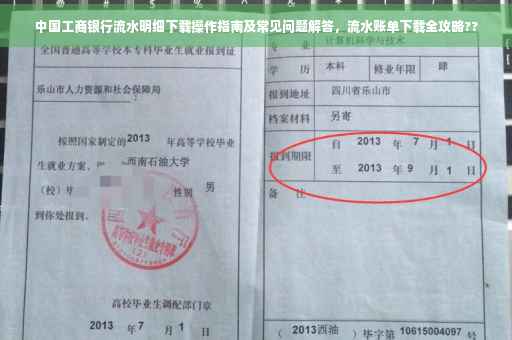 摘要:,,中国工商银行流水明细下载操作简便,客户可登录网银或手机银行,进入账户查询页面,选择下载流水明细。操作指南详细,包括登录、查询、下载等步骤。常见问题解答涵盖下载失败、账单格式等问题,帮助客户顺利获取流水账单。工商银行流水账单下载服务方便客户管理个人财务,提高财务管理效率。