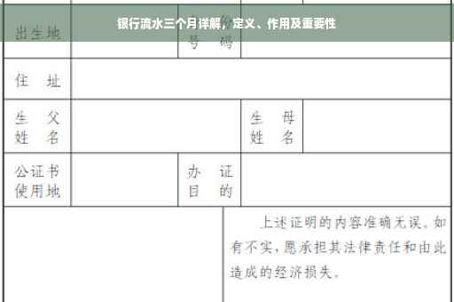 银行流水三个月,是指个人银行账户在近三个月内的资金流入和流出情况,这些记录详细反映了个人或企业的收入、支出、存款、取款等财务活动,通过审查这些流水记录,银行可以了解申请人的经济状况、收支平衡以及资金稳定性等,从而评估申请人的信用状况和还款能力。