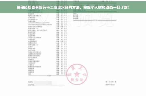 查看银行卡工资流水账对于日常生活和工作中都显得尤为重要,通过工资流水账,你可以了解自己的收入情况,包括每月的收入来源、金额以及发放时间,这有助于你更好地进行理财规划,掌握个人财务动态。