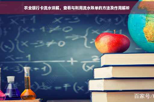 随着科技的进步和互联网的普及,越来越多的人开始使用银行卡进行日常消费和转账,在这个过程中,我们经常会听到一个词汇——“流水”,农业银行卡流水是什么情况呢?本文将为您详细解析农业银行卡流水的概念、查看方法以及其在实际应用中的作用。
