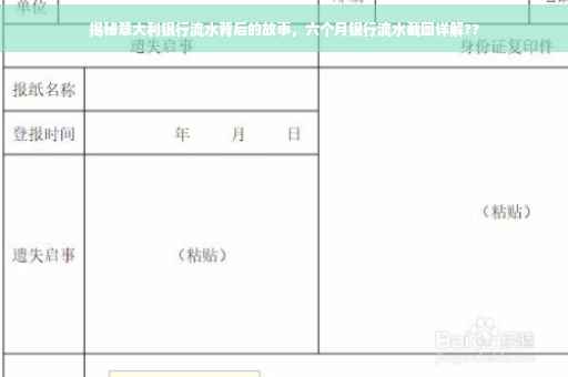 摘要:本文将揭示意大利六个月银行流水截图背后的故事。通过深入分析银行流水账单,揭示意大利经济生活中的资金流向、消费习惯和商业活动。介绍如何解读银行流水中的细节,包括账户余额、交易记录等,帮助读者了解意大利银行系统的运作方式。