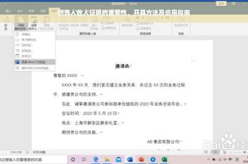 在当今社会,随着经济的发展和就业市场的多样化,收入证明逐渐成为人们生活中不可或缺的一部分,特别是在办理贷款、信用卡、租房以及移民等关键事务时,供养人收入证明更是发挥着举足轻重的作用,本文将详细介绍供养人收入证明的作用、内容、实际应用、注意事项以及常见问题解答,以帮助读者更好地理解和运用。