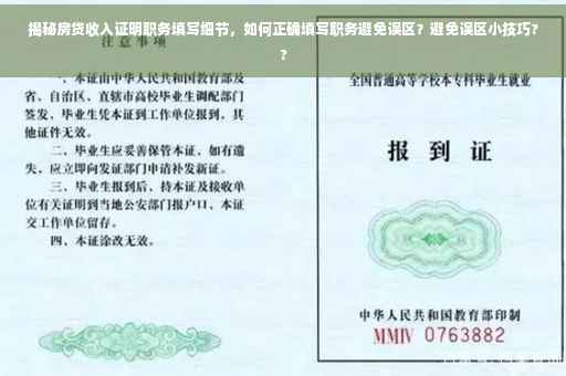 摘要:本文将探讨房贷收入证明中职务要素的奥秘,指导读者如何正确填写,避免误区。在填写房贷收入证明时,职务的填写至关重要,它关系到贷款额度的审批。本文将揭示哪些职务更有利于贷款审批,同时指出在填写过程中应避免的陷阱,帮助读者顺利获得房贷。