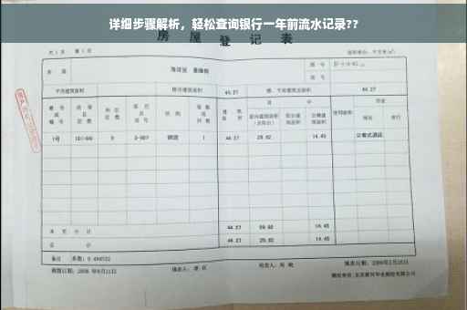 摘要:本文将为你详细解析如何查询银行一年前的流水记录。通过简单几步,轻松掌握查询方法。文章将提供详细的步骤,帮助你顺利查询到银行一年前的流水账单,让你轻松了解自己的资金流动情况。跟随本文指引,轻松搞定银行流水查询。