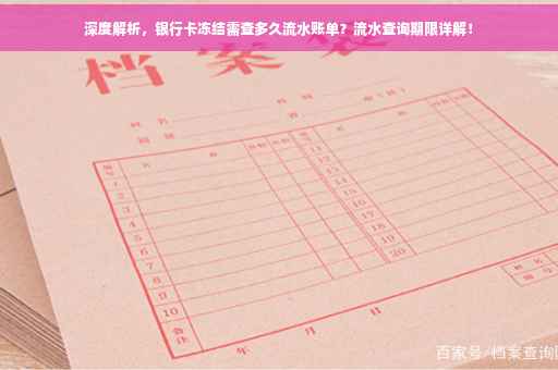 摘要:本文将深度解析银行卡冻结后需要查询的流水账单时间范围。针对银行卡冻结的情况,查询流水账单的时间通常为几个月内,具体月份数可能因不同情况而异。本文将详细解释需要查询流水账单的原因,以及如何通过查询流水账单来解决银行卡冻结问题。
