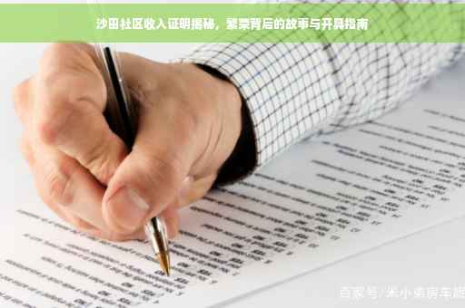 随着城市化的不断推进,沙田社区作为一个蓬勃发展的地区,吸引了众多人们的目光,作为一个自媒体作者,我有幸深入了解了沙田社区的发展历程,尤其是其收入证明方面的故事,在这篇文章中,我将为大家揭示沙田社区的繁荣背后,居民们的收入证明情况如何,以及它对整个社区发展所产生的影响。