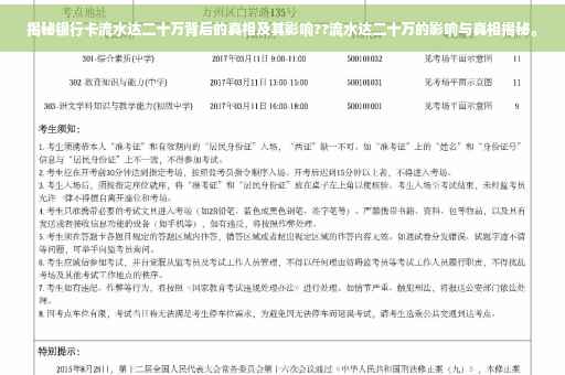 银行卡流水达二十万背后隐藏着合法收入和金融交易活跃度的真相,了解这一真相并合理规划,可以更好地管理个人财务状况,希望本文能为你揭开这一话题的神秘面纱。