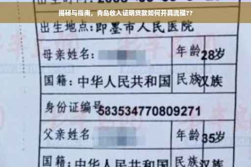摘要:青岛收入证明贷款申请指南揭秘。申请者需了解收入证明的开具流程及所需材料。明确贷款目的和额度,然后准备相关证明材料,如工资单、银行流水等。向所在单位或相关部门提出申请,填写申请表格并递交所需材料。等待审核结果。本指南提供关键步骤和注意事项,帮助申请者顺利开具收入证明贷款。