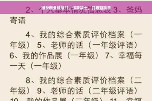 摘要:回乡创业证明书是一份证明个人决心和努力的证明文件,记录着追梦者勇敢回归故土,开启创业新篇章的历程。该证明书应包含个人基本信息、创业计划、投资规模等内容,并强调个人对家乡的热爱和对未来的信心。撰写证明书时需注意简洁明了,突出重点和亮点,展现个人的决心和实力。回乡创业是新时代的新趋势,为家乡发展贡献力量,实现个人价值的同时,也为社会创造更多就业机会和财富。