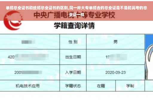 同一所学校,同学们不管是以统招还是单招考入,毕业之后所拿的毕业证都是一样的。只有自考或者是承认统招考进该院校,拿到的毕业证才不是统招文凭。