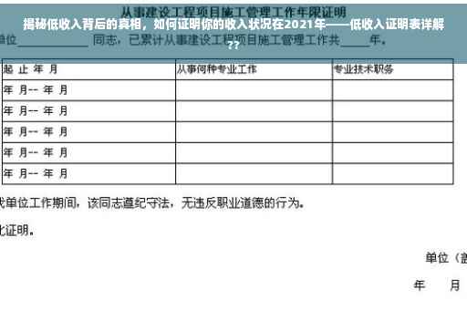 摘要:本文将揭示低收入背后的真相,探讨收入状况的真实情况。在2021年,如何证明自己的收入状况成为了一个重要的问题。本文将介绍低收入证明表的作用和重要性,帮助读者了解自己的收入状况,并提供相应的解决方案和建议,以改善经济状况。