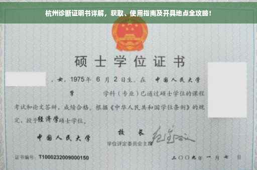 在现代社会,随着医疗服务的普及和人们对健康问题的日益关注,诊断证明书成为了越来越多人关注的焦点,特别是在杭州这座繁华的城市,由于其发达的医疗服务体系和众多的医疗机构,诊断证明书的获取和使用显得尤为重要,本文将详细介绍杭州诊断证明书的获取流程、使用注意事项以及常见问题解答,帮助读者更好地理解和使用诊断证明书。