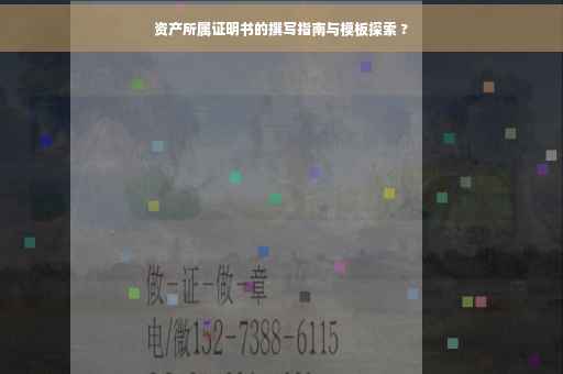 随着经济的发展和个人财富的积累,资产所属问题日益受到人们的关注,资产所属证明书作为证明资产归属关系的法律文件,其重要性不言而喻,本文将详细介绍资产所属证明书的作用、内容要点、撰写注意事项以及实际应用场景,帮助读者更好地了解和使用这一文件。