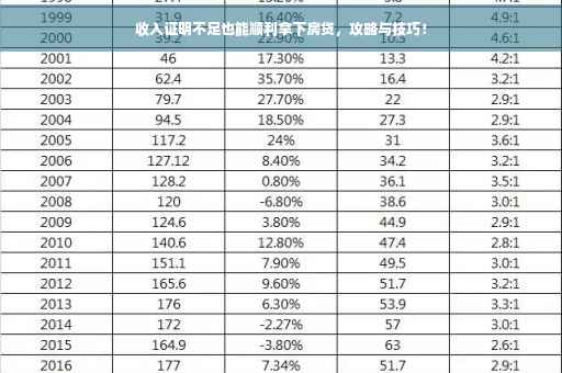 购房已成为当下社会众多人士生活中的重要事件,面对房价不断攀升的现状,许多人在申请房贷时遭遇了收入证明不足的问题,收入证明作为银行评估借款人还款能力的重要参考,其不足往往会导致贷款申请的拒绝,面对收入证明不足的情况,我们该如何应对,顺利申请房贷呢?本文将从以下几个方面为您深入解析。