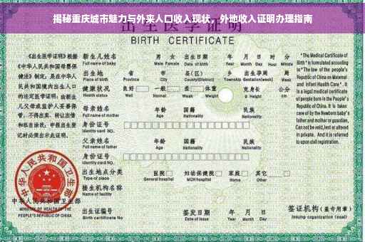重庆作为一个充满魅力的城市,以其独特的地理位置、丰富的历史文化和繁荣的经济发展,吸引着越来越多外地人前来寻求发展机会,本文通过探讨“外地收入证明”这一主题,揭示了重庆的城市魅力和外来人口的收入现状,希望为读者提供有价值的信息和启示。