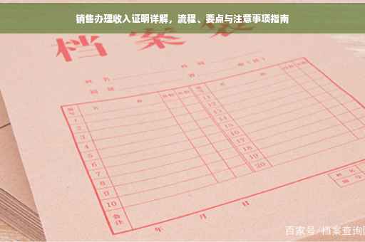 摘要:本文将全面解析销售办理收入证明的流程、要点与注意事项。从了解收入证明的重要性开始,本文将详细介绍如何撰写销售办理收入证明,包括必要内容和格式。还将强调在办理过程中需要注意的关键点,如确保信息真实准确、遵守公司政策等。本文旨在帮助读者顺利办理销售收入证明,避免出错。