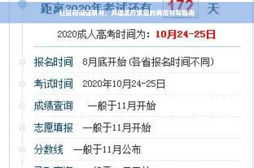 摘要:社区和谐证明书是记录社区和谐共建成果的书面证明,旨在展示社区的美好氛围和居民的团结协作精神。撰写时,应突出社区的各项共建活动、居民参与情况、和谐氛围营造以及取得的成果。内容应简洁明了,重点描述社区在共建美好家园方面的典范作用,字数控制在100-200字之间。
