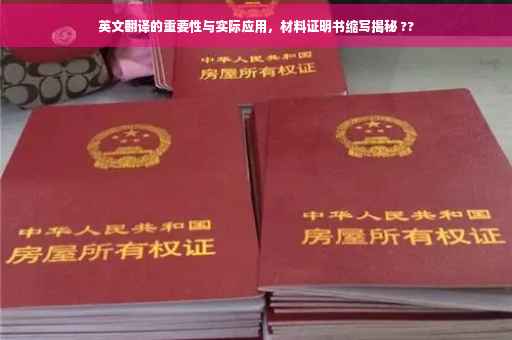 在当今全球化的时代,英语作为一种国际通用语言,在各个领域发挥着举足轻重的作用,特别是在材料科学领域,随着技术的不断发展和国际交流的加强,材料证明书英文翻译的重要性日益凸显,本文将详细介绍材料证明书英文翻译的相关知识,包括其重要性、翻译要点以及实际应用等方面。