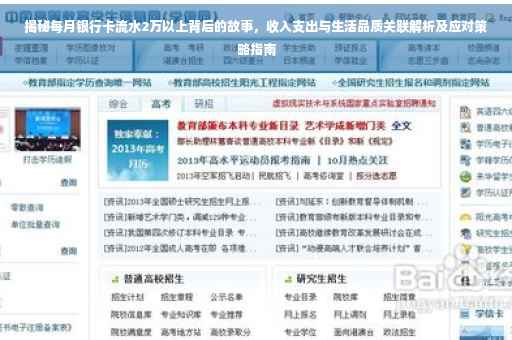 摘要:每月银行卡流水超过2万,背后反映了个人收入与生活品质的关联。高收入可能伴随着高支出,需合理规划个人财务。面对这种情况,建议注重理财,控制支出,确保收支平衡。了解银行流水的重要性,避免不必要的财务风险。