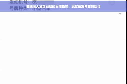 摘要:,,关于兼职收入贷款证明的写作,需要清晰、准确地反映个人的兼职收入状况。内容应包含贷款人的姓名、兼职单位、工作时间、收入情况等基本信息。证明中需明确表述兼职收入的稳定性和连续性,以及该收入作为贷款还款来源的可靠性。写作时需注意格式规范、语言简洁明了,确保证明的有效性。对于策略方面,应着重展现如何合理安排兼职工作与贷款还款计划,以展示贷款人的责任感和信用度。