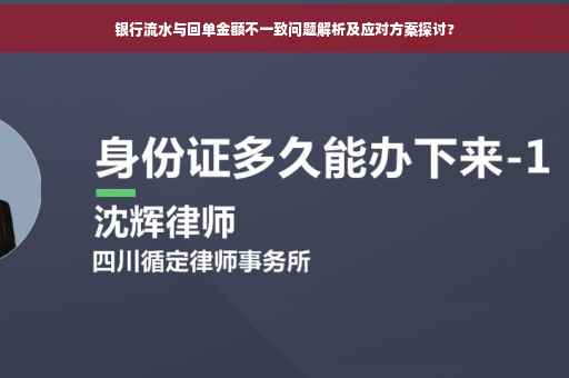 摘要:银行流水与回单金额不一致时,可能是由于操作失误、系统故障或其他原因导致的。面对这种情况,首先需要仔细核对流水和回单的各项细节,确认差异的具体数额和原因。若是因操作问题导致的差异,可以采取相应措施进行更正;若是系统问题,可联系银行客服寻求解决方案。确保及时沟通、仔细核对,以准确解决金额不一致的问题。