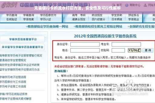 摘要:即使没有银行卡,也可以打印流水账单。可以通过网上银行、手机银行或前往银行柜台进行打印。这些方法虽然方便,但需要注意安全性,确保个人信息和资金安全。建议在官方渠道下进行操作,避免泄露个人信息和遭遇诈骗风险。