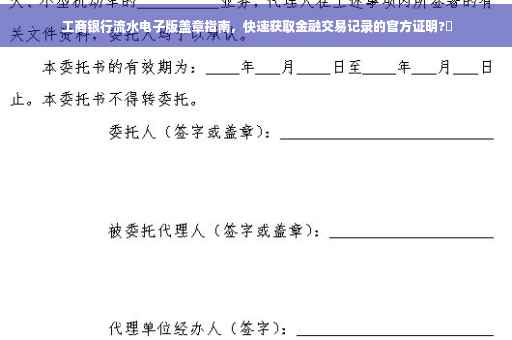 随着互联网技术的不断发展,电子化程度越来越高,各行各业都在积极推动数字化转型,金融行业作为国民经济的重要支柱,也在不断创新服务模式,提高服务质量,工商银行作为其中的佼佼者,推出了流水电子版盖章服务,为广大客户提供了便捷、高效的金融交易记录查询方式,本文将详细介绍工商银行流水电子版盖章的相关信息,帮助大家了解并正确使用这一服务。