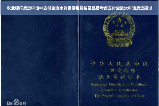 摘要:,,关于农业银行房贷申请中支付宝流水的重要性,申请者需注意银行会考虑支付宝流水作为评估还款能力的重要依据。支付宝流水能够反映申请人的消费习惯和财务状况,对于房贷申请有着重要作用。申请人应保持良好的支付宝流水记录,以提高房贷申请的成功率。