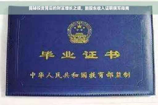 摘要:本文将介绍如何撰写新股东收入证明,并揭示投资背后的财富增长之道。通过了解投资的基本原理和策略,您将学会如何有效地管理您的财务,并通过正确的投资决策实现财富增长。本文将指导您如何准备新股东收入证明,以确保您的投资行为得到充分的认可和支持。无论您是初次涉足投资领域还是已有经验的投资者,本文都将为您提供有价值的建议和信息。