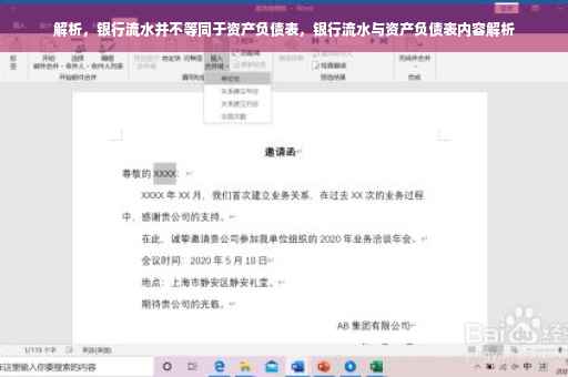 以一家小型企业为例,当该企业收到一笔货款并存入银行时,这笔交易会立即出现在银行流水上,显示为企业现金资产的增加,如果此时编制资产负债表,该企业的现金类资产将会相应增加,通过对比银行流水和资产负债表,我们可以清晰地看到二者在资金变动方面的关联性,需要注意的是,尽管二者有关联,但银行流水不能完全替代资产负债表,因为资产负债表提供了更全面的财务状况信息,包括资产、负债和股东权益等更详细内容。