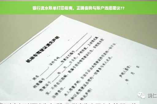 摘要:关于银行流水账单的打印问题,银行流水可以单独打印一个账户。在打印流水账单时,需要注意正确的姿势和实用指南。客户可以前往银行柜台或使用网上银行等渠道进行打印,同时需要提供账户持有人的身份证明和账户信息。正确获取银行流水账单对于个人和企业都非常重要,可以用于贷款、财务审计等多种场合。