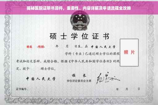 在现代社会,随着医疗行业的迅速发展,人们对医疗健康问题的关注度不断提高,在这个过程中,医院证明书原件成为了许多事务办理的重要依据,本文将详细介绍医院证明书原件的重要性、内容以及申请流程,帮助大家更好地了解和运用这一重要文件。