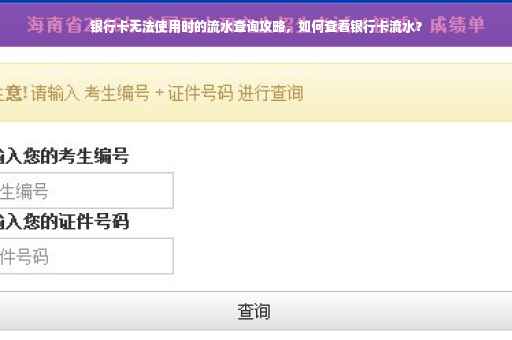 在生活中,我们有时会遇到银行卡因各种原因暂时无法使用的情况,这时,很多人会关心自己的资金流向和交易记录,想要查询银行卡的流水,当银行卡无法使用的时候,我们还能否查询流水呢?答案是肯定的,本文将为大家解答这一问题,并详细介绍查询银行卡流水的方法。