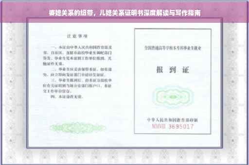 随着社会的进步和婚姻观念的转变,家庭关系日趋复杂化,在众多的家庭关系中,婆媳关系一直是一个经久不衰的话题,本文将围绕“儿媳关系证明书”这一主题,探讨在现代家庭中,儿媳角色所面临的挑战、应对策略以及家庭成员间的相互理解和尊重。