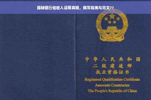 摘要:本篇内容将揭示银行低收入证明的真实情况,介绍如何撰写银行低收入证明。文章将涵盖如何正确、清晰地表述个人收入状况,以及需要注意的细节和格式要求。范文示例将作为参考,帮助读者更好地理解和应对银行低收入证明的相关问题。