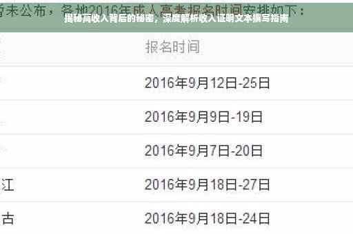 在当今社会,随着经济的快速发展和社会的进步,越来越多的人开始关注个人收入问题,一份收入证明文本作为个人经济实力的直接体现,对于求职、贷款、社交等方面都具有重要意义,本文将深度解析收入证明的文本内容,带你一起揭秘高收入背后的秘密。