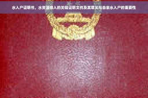 随着城市化进程的加速和人口的增长,水资源的管理与分配已成为社会关注的焦点,在此背景下,水入户证明书作为居民生活用水接入的重要证明文件,其重要性日益凸显,本文将详细介绍水入户证明书的含义、功能及其在现实生活中的应用。
