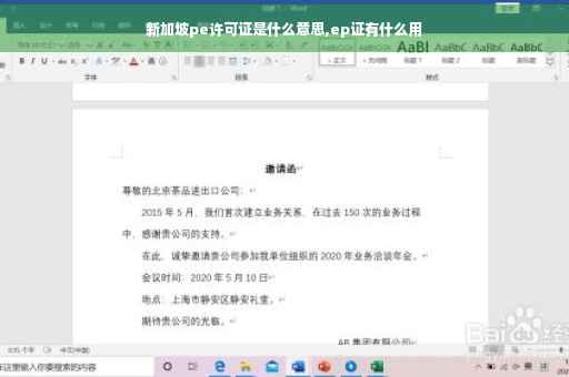 注意:持有PEP不能在新加坡从事商业活动,如果要经商则要申请创业许可证(Entrepass)。