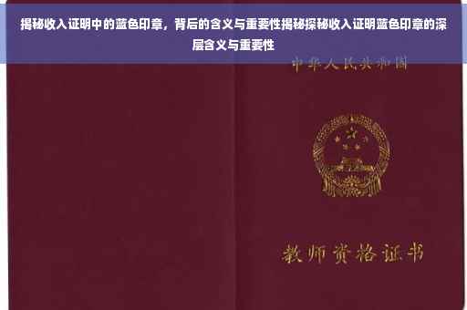 摘要:本文将揭示收入证明中的蓝色印章的含义和重要性。通过深入了解,蓝色印章代表着权威性和可信度,证明个人收入的真实性和合法性。本文将探讨蓝色印章背后的含义,以及其对于个人和企业的重要性,帮助读者更好地理解收入证明中的这一关键元素。