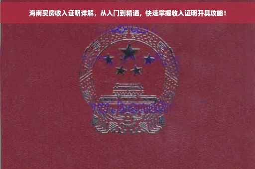摘要:本文将详细介绍海南买房收入证明的相关内容,从入门到精通,让读者了解如何开具有效的收入证明。文章将涵盖收入证明的重要性、开具流程、注意事项等方面,帮助购房者顺利办理房贷手续,确保购房过程的顺利进行。