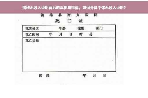 摘要:本文将探讨个体无收入证明背后的真相及所面临的挑战。介绍如何开具个体无收入证明,包括可能遇到的困难和解决方法。文章将帮助读者了解无收入证明的重要性及其背后的复杂性,同时提供一些实用的建议,以帮助个体顺利开具无收入证明。