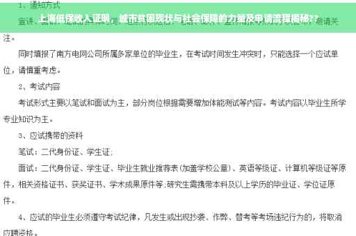 摘要:上海低保收入证明是揭示城市贫困现状与社会保障实施情况的重要文件。申请开具收入证明时,需前往当地社区事务受理服务中心或社保部门,提交相关证明材料,如身份证、户口簿和低保证件等。这份证明不仅反映了城市贫困群体的生活状况,也展现了社会保障体系在帮助困难家庭方面的力量。通过收入证明,人们可以更加了解城市贫困现状和社会对贫困问题的关注与支持。