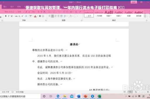 获取一年内银行流水电子版具有显著便捷性和高效性,有助于个人和企业更好地管理财务状况,通过网上银行、手机银行或柜台办理等途径,用户可以轻松获取电子版银行流水,在使用过程中,务必注意保护个人隐私和账户安全,确保获取的信息真实有效,并建议进行备份存储。