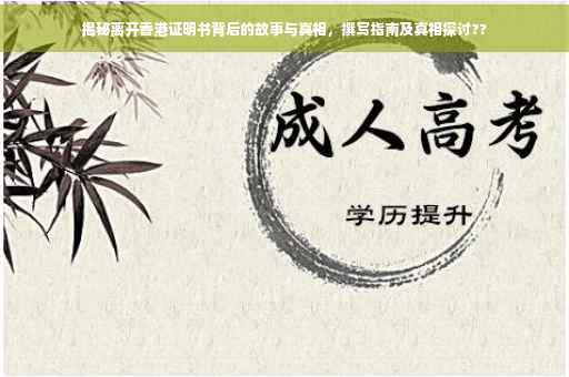 摘要:本文将介绍关于离开香港证明书的相关信息,同时深入探究其背后的故事与真相。本文将指导读者如何撰写离开香港证明书,并揭示其中的细节和注意事项。内容简洁明了,字数控制在100-200字之间,旨在为读者提供清晰、准确的信息。