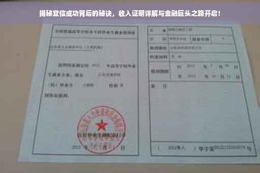 摘要:宜信收入证明是展示金融巨头成功秘诀的重要一环。通过宜信收入证明,可以了解到其背后的业务模式、盈利能力和成功因素。想要开具宜信收入证明,需要前往宜信公司相关部门进行申请,提供相关个人信息和证明文件,经过审核后即可获得收入证明。宜信的成功秘诀在于其专业的金融团队、创新的产品设计和优质的服务体验等方面。