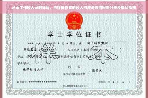 摘要:,,本文将详细介绍从事工作的收入证明撰写方法,重点解析自媒体作者的收入构成及其影响因素。文章指出,自媒体作者的收入主要来源于广告分成、付费内容、赞助和合作等方面,其收入受到内容质量、影响力、读者群体和市场环境等多重因素影响。本文将指导读者如何撰写收入证明,以便更准确地反映个人收入状况。